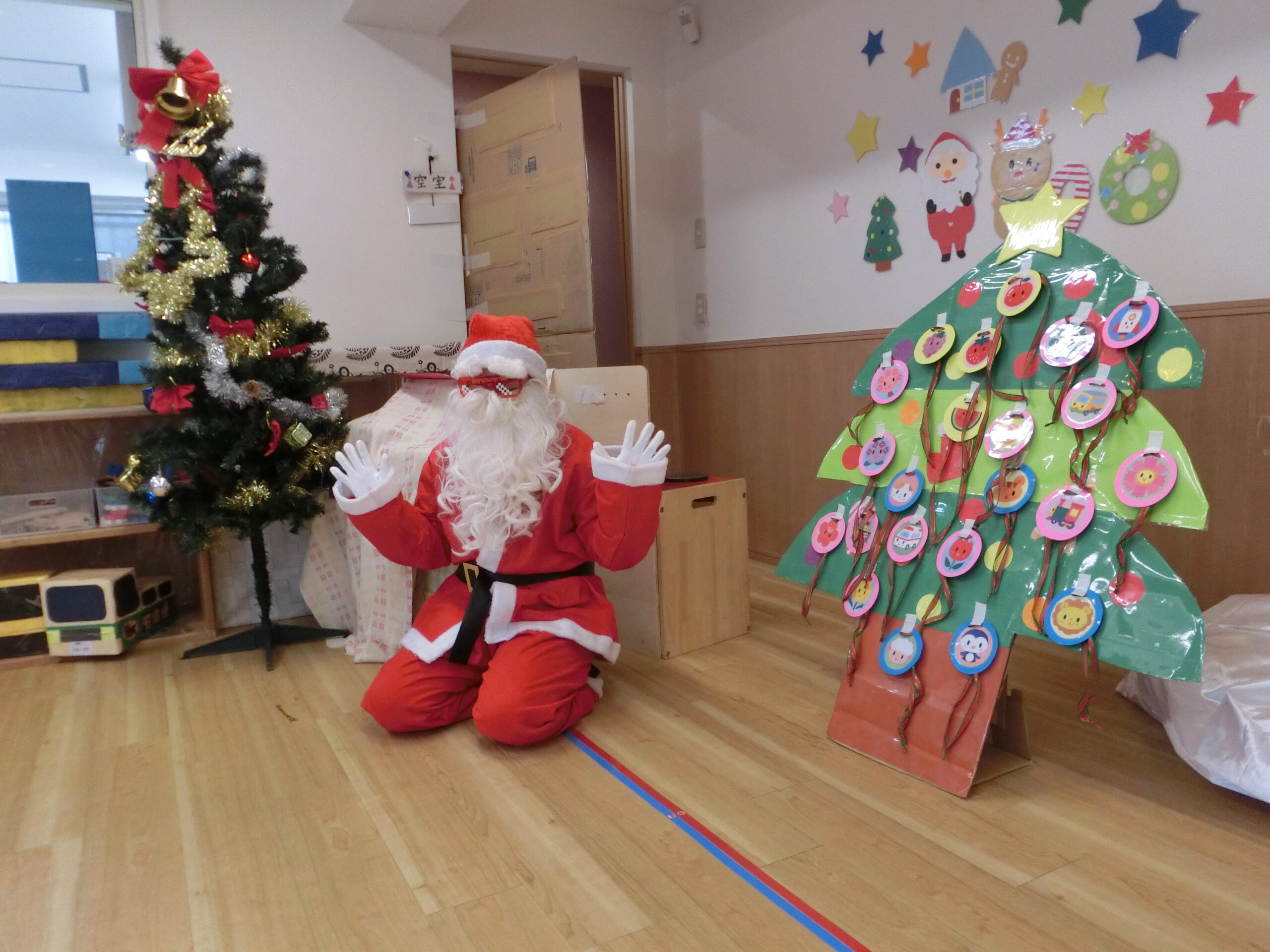 今日は、三幸保育園のクリスマス会。サンタさんの帽子を被ってお友だちも保育室に集合しました。 うさぎ組のお友だちのダンスのプレゼント みんなの大好きな曲を可愛らしくダンスしてくれました♥ 今年は先生たちからも出し物のプレゼント『大きなかぶ~クリスマスver.~』 畑の中に白い袋が埋まっていてみんなで「うんとこしょ!どっこいしょ!」 先生たちの楽しい出しものに子どもたちも真剣に見ていましたよ サンタさんの登場でゲームや合奏をして過ごしました。ピアノ担当はサンタさん!! サンタさんのピアノに合わせてマラカスを鳴らしました。 最後はサンタさんからのプレゼント🎁 楽しいクリスマス会を過ごしました♥ ...